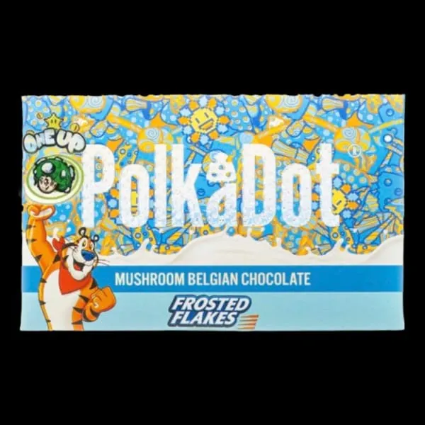 The PolkaDot Frosted Flakes Mushroom Chocolate Bar is often described online as a themed or branded chocolate product associated with “mushroom chocolate” culture. It typically appears in discussions around novelty edibles that combine confectionery with mushroom-related ingredients. However, the exact composition, legality, and authenticity of products using this branding can vary widely depending on source and region.